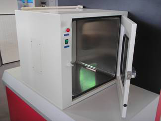 1、短距離傳遞窗工作臺(tái)面采用不銹鋼板,平整光潔耐磨